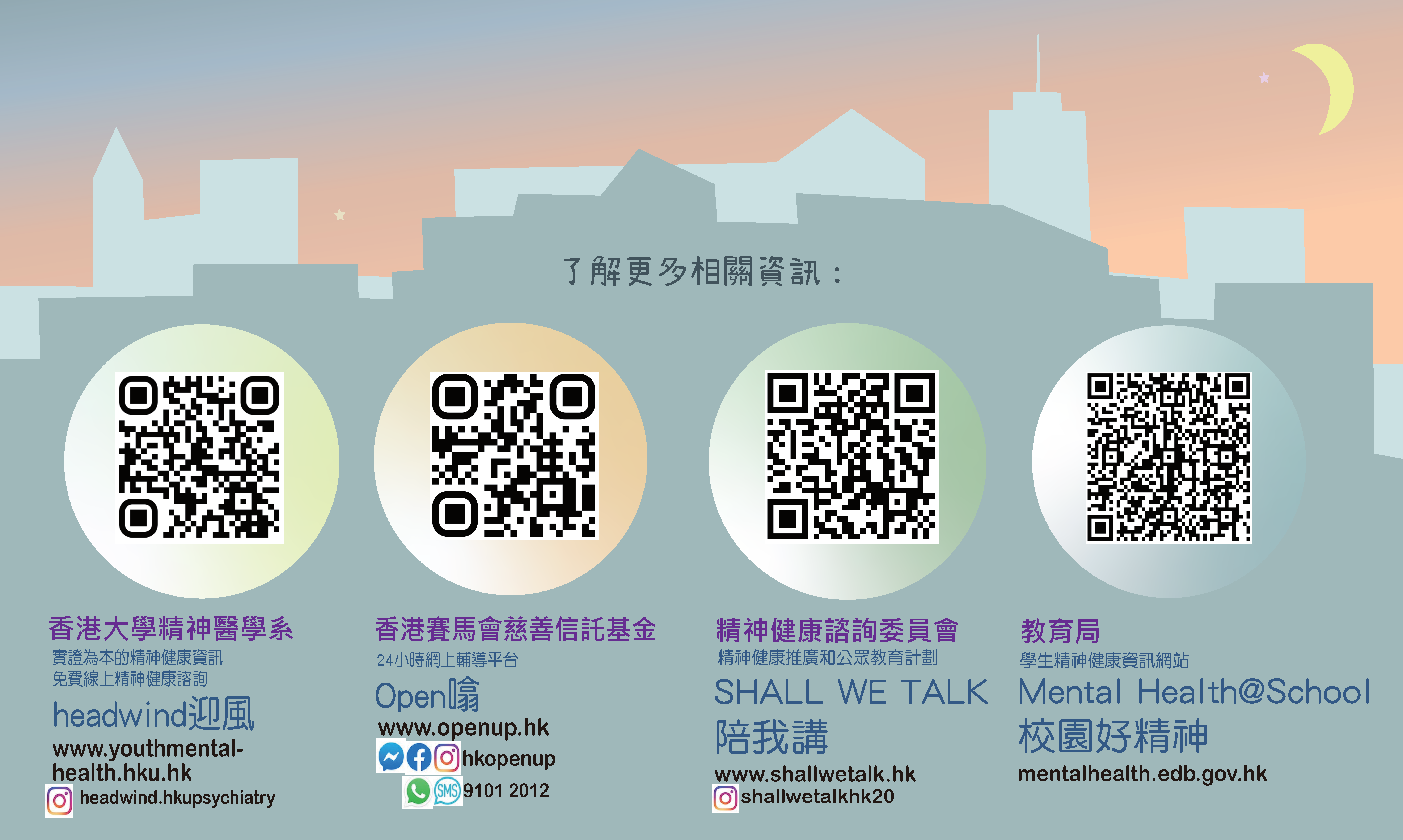 - 張貼有關精神健康的電子海報及相關資訊,以增強學生對精神健康的了解,例如:如何觀察自己的身心需要等。