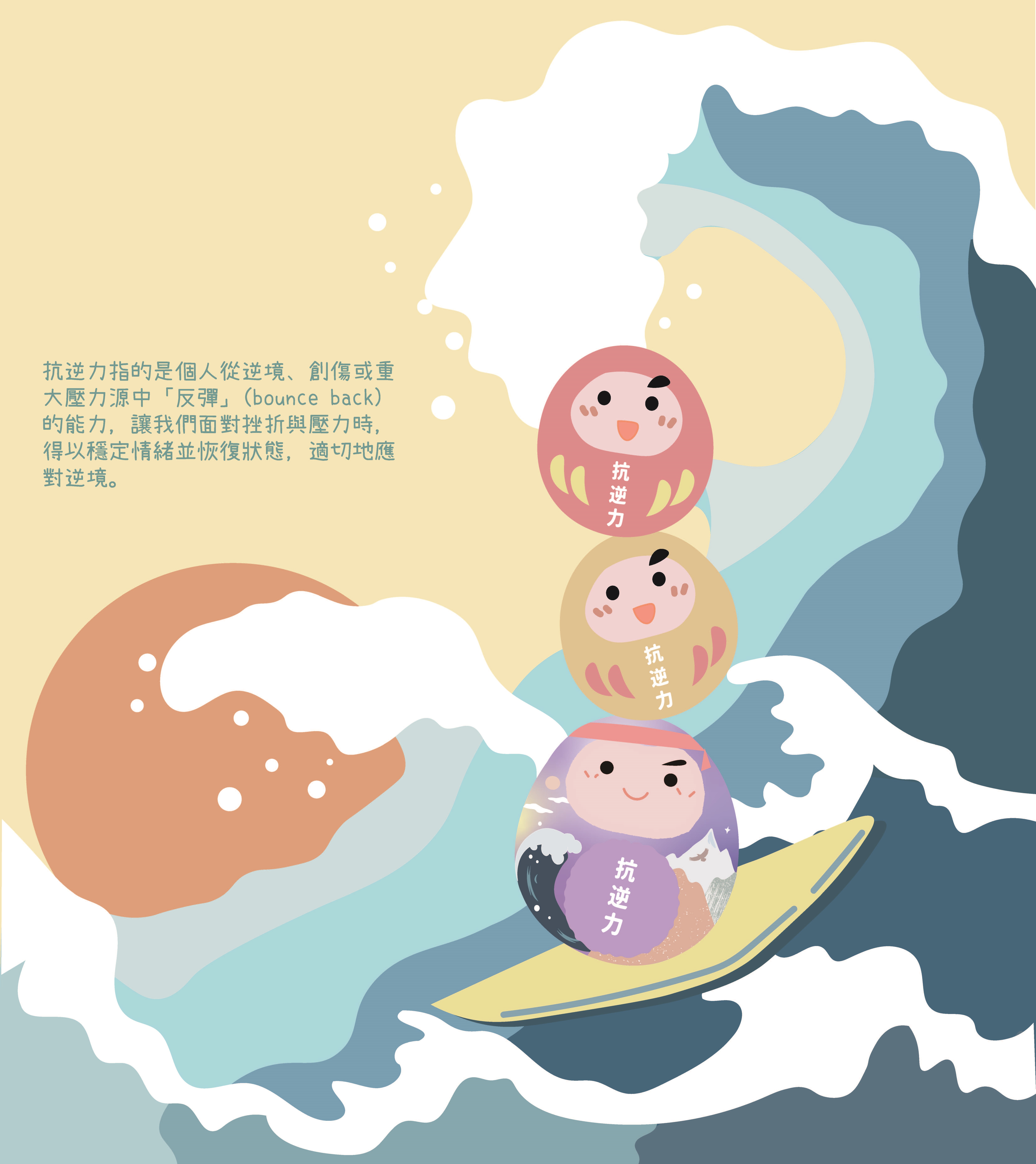 抗逆力 (resilience) 是指個人從逆境、創傷或重大壓力源中「反彈」(bounce back) 的能力,讓我們面對挫折與壓力時,得以穩定情緒並恢復狀態,適切地應對逆境。